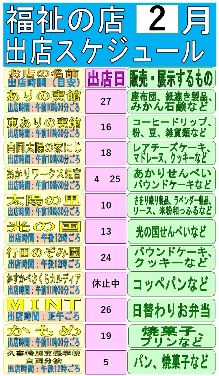 「福祉の店」令和8年2月の出店予定