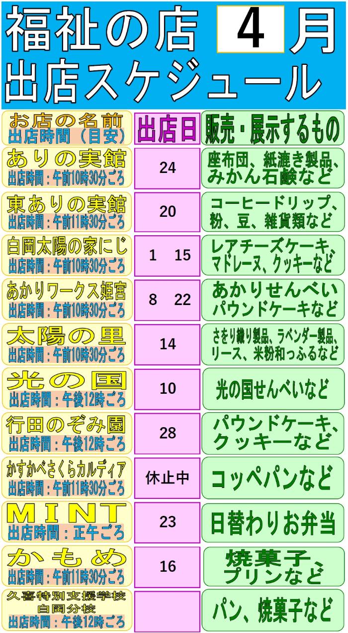 「福祉の店」令和8年4月の出店予定