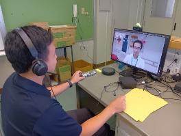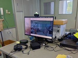 そのため、市民課が所在する保健福祉総合センター(はぴすしらおか)内の1階窓口と旧大山小学校内の教育指導課に遠隔窓口システム(ビデオ通話)を設置し、旧大山小学校へ手続に行くことなく、遠隔により手続ができるようになりました。