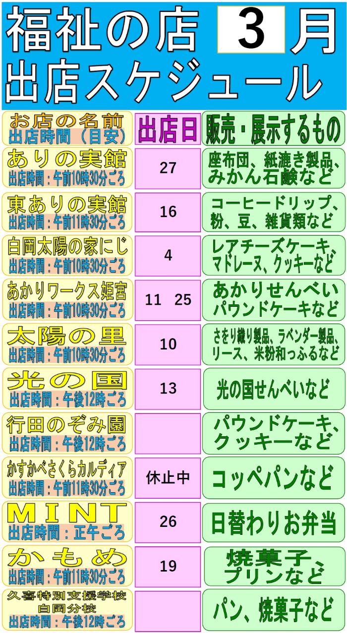 「福祉の店」令和8年3月の出店予定